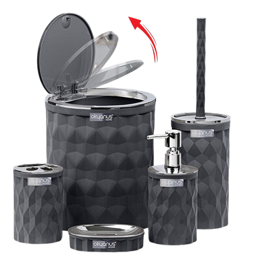 Bathroom Accessories Set - 5 Pcs Decor Bathroom Set (Coliseum) - Wooden Frame - With Pedal Waste Bin