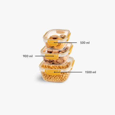 Food Storage Containers - Plastic Sealed Square Set of 3 (500 - 900 - 1500 ml )
