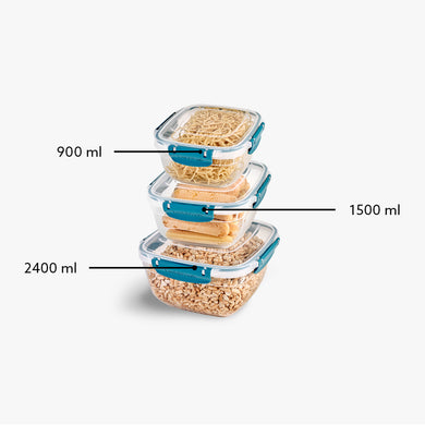 Food Storage Containers - Plastic Sealed Square Set of 3 (900 - 1500 - 2400 ml)
