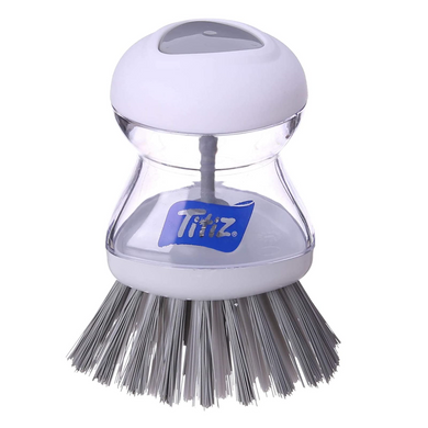 Soap Dispensing Palm Dish Brush (Light Grey) - Kitchen Brush for Cleaning