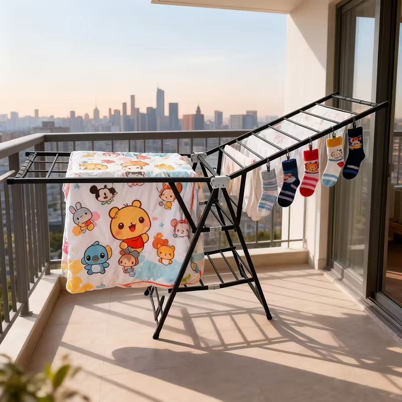 - Space-Saving: Clothes drying rack foldable can be easily folded to 47 cm wide x 106.5 cm high after use. The compact size is easy to store, and it does not take up extra space whether it is for daily use or seasonal storage. It is very suitable for balcony, laundry room, bathroom or corner storage, making the home environment more tidy and orderly.