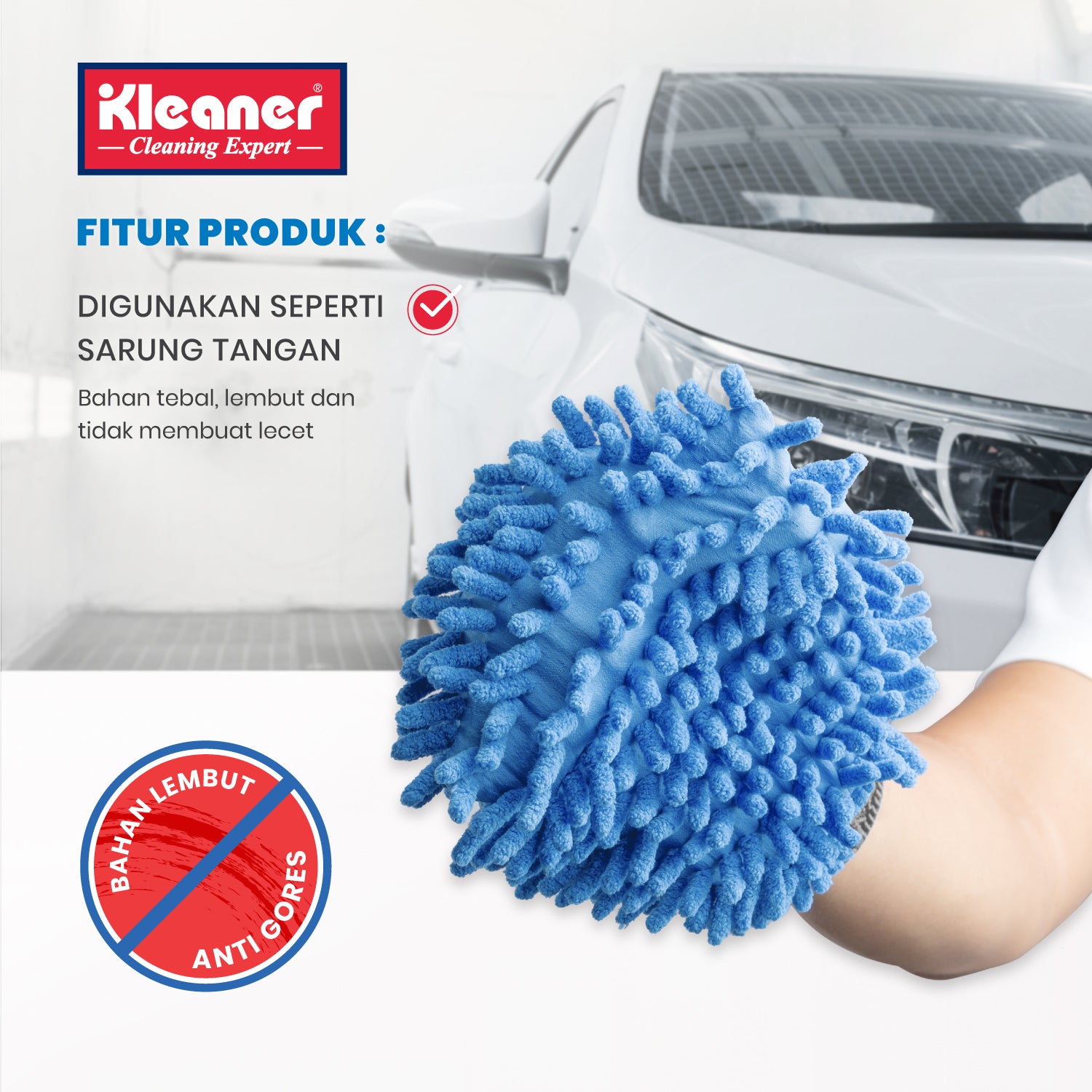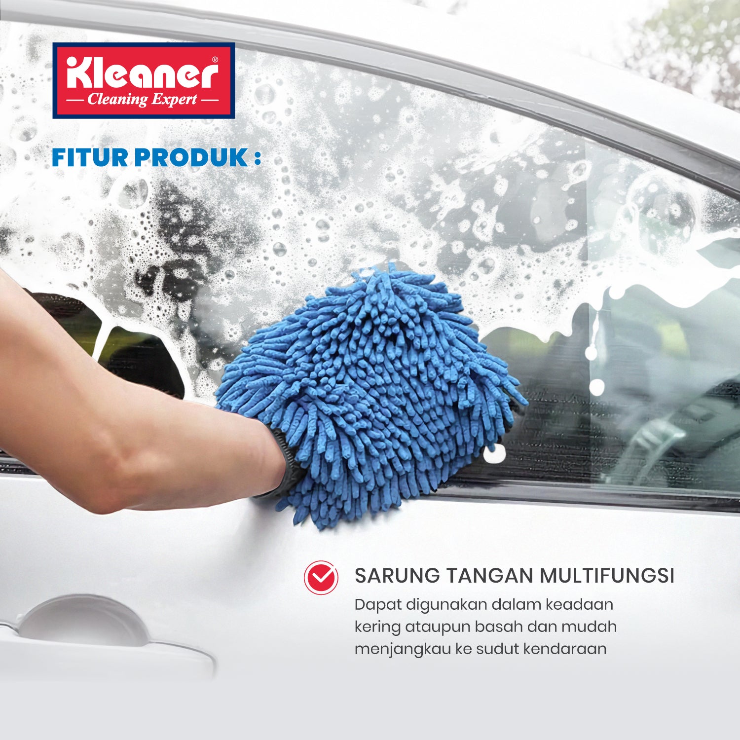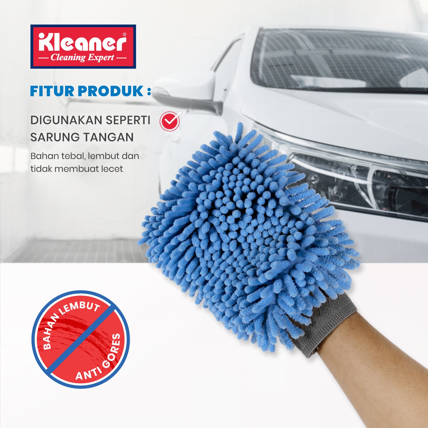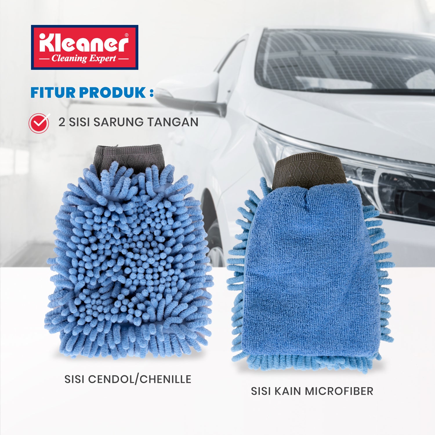 Our Microfiber Washing Gloves are gloves that can be worn and are suitable for washing or drying cars or motorbikes because these microfiber gloves are designed in a cendol shape so that dust and dirt enters the gaps between the fabric, so it doesn't scratch the vehicle's paint. (Swirl Free).