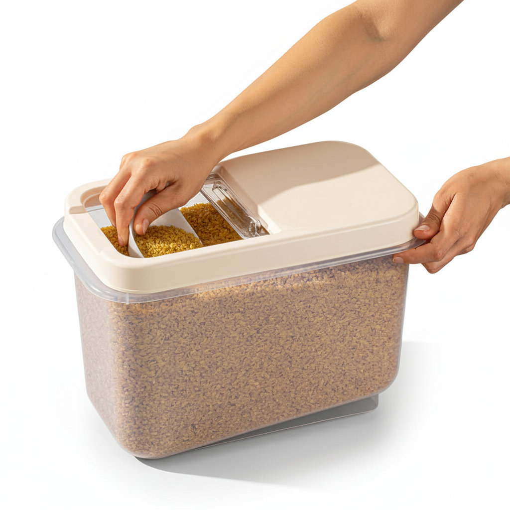 🛍️ Product Description: Transform your cluttered pantry into a model of organization with our Convenient Slide-Lid Storage Container. Designed for effortless access and bulk storage, this 10-liter container is the perfect home for staples like rice, flour, sugar, grains, or even pet food. The elegant sliding lid provides quick, one-handed access, while the crystal-clear body lets you see your stock levels at a glance. Engineered for strength and durability, this container is a stylish and practical solution to keep your food fresh and your kitchen looking neat and tidy.